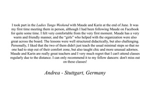 LADIES TANGO WEEKEND